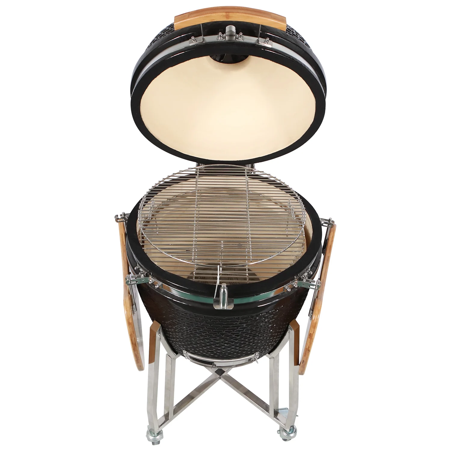 2. Put your cooking grid on the top of the fire ring, keep the top and bottom vent are open to make sure the ceramic bbq grill are well ventilated;