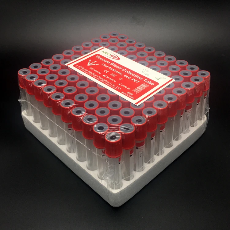 HSE0502 | Sterile Serum Tube | Glass/ PET | 13x75/100mm; 16x100mm | 1-10ml | Red top | Clot Activator | 100pcs/tray, 1200pcs/ctn |