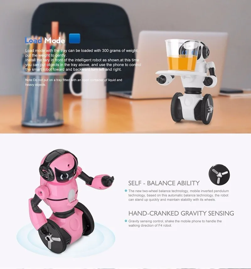- Load-bearing mode: attached with a tray, the robot can carry up to 200g in weight.