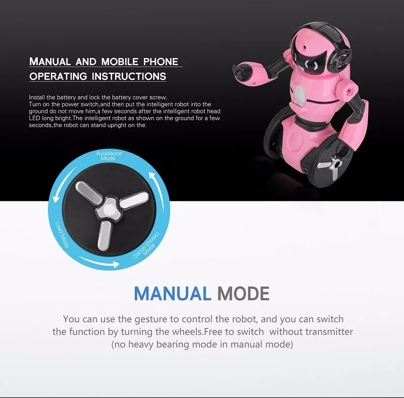 - Low voltage reminding function: when the voltage is low, the two eyes of the robot will flash for reminding you to charge the toy as soon as possible.