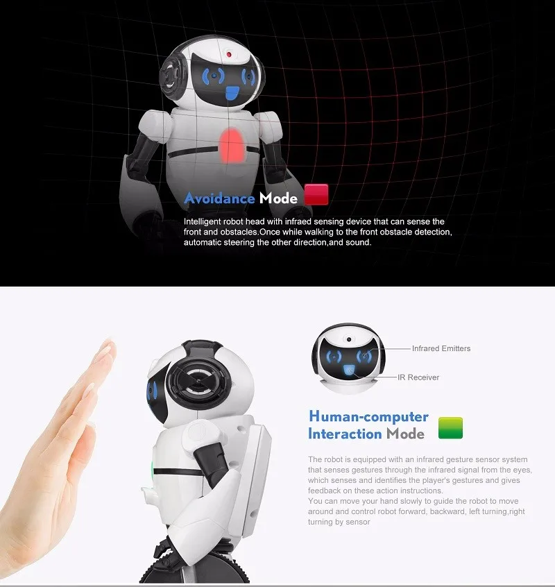 - Human-computer interaction mode: with built-in sensing device, you can use your hands to control the robot easily.