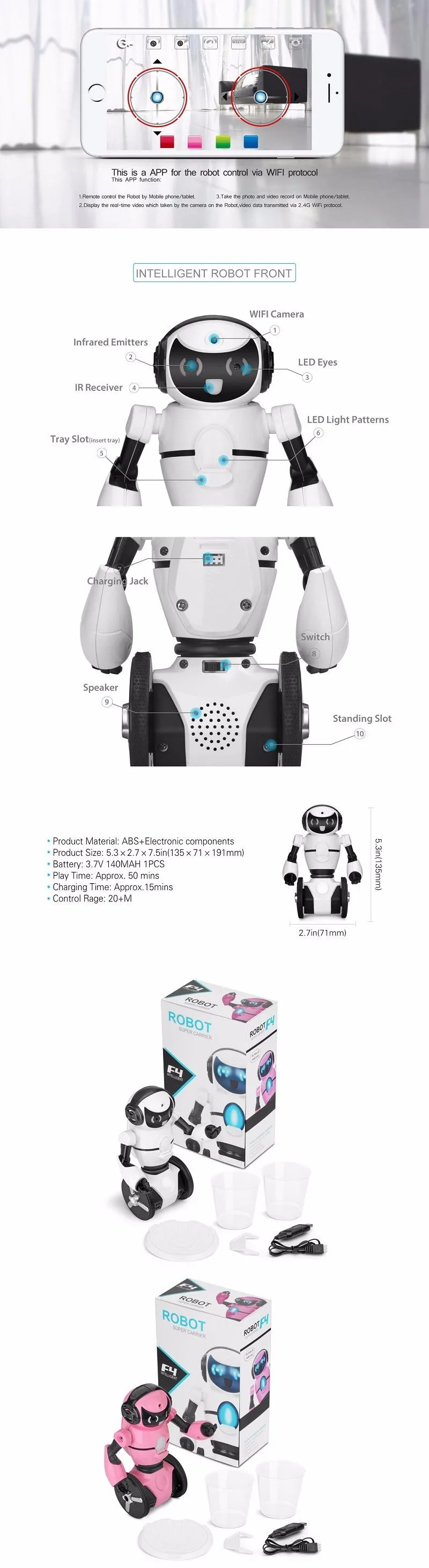 Robot Size: 13.5*7.1*19.1cm
