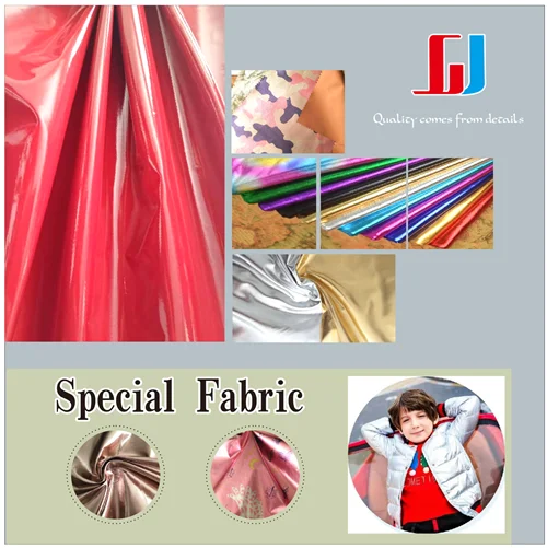 Mainly engaged in all kinds of woven male,women’s environmental chemical fiber fabrics and interwoven fabrics,printing,coating,bronzing and some special finishing.