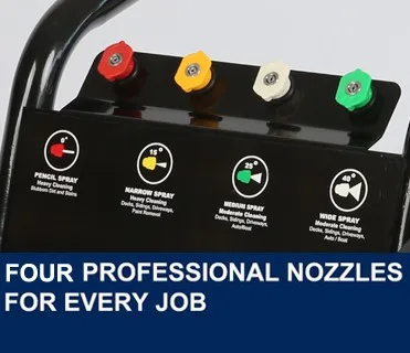 3) 4 professional nozzles you can go from light cleaning to stripping those hard to clean pavements.