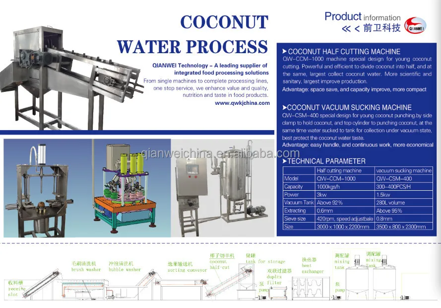 QW-CCM-1000 machine special design for young coconut cutting. Powerful and efficient to divide coconut into half, and at the same, largest collect coconut water. More scientific and sanitary, largest improve production.