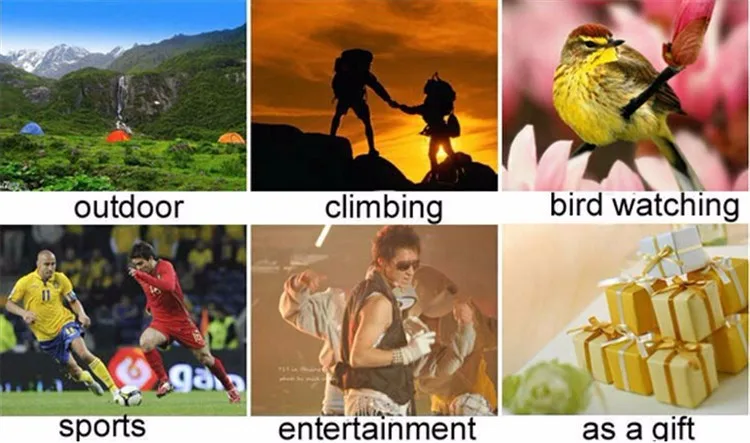 Material: | Aluminium Alloy | Application: | Can be used in Outdoor sports, traveling, viewing, bird watching, hunting, racing, promotional gifts, or others |