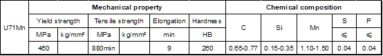 Material: U71Mn, U75V, U76CrRE, U20Mn