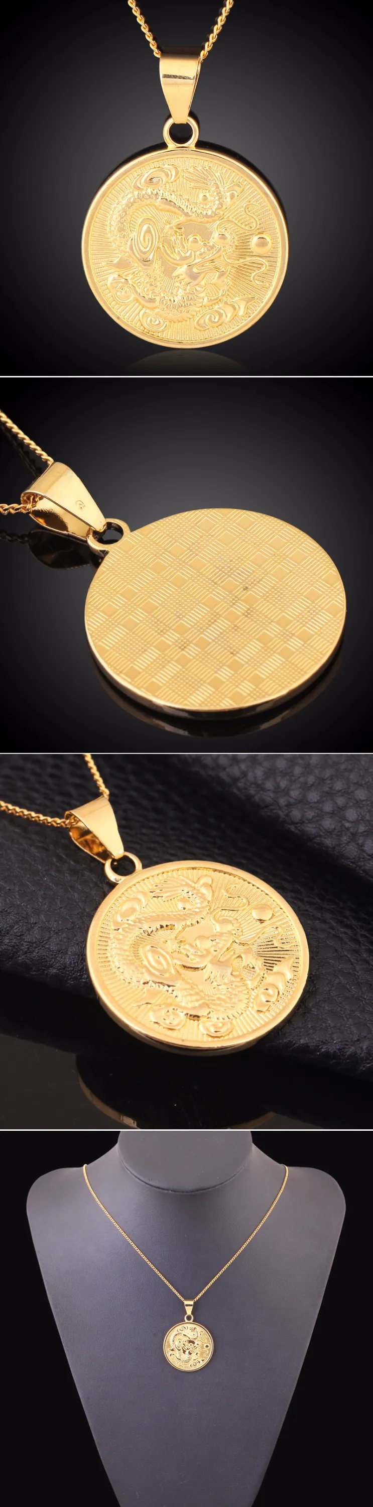 Item | New Design High Quality 18K Gold Plated China Dragon Round Necklace Pendant For Men |