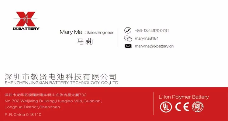 Jingxian Battery is Hi-tech enterprise specializing in R&D, production and marking of lithium battery, the products has passed the international safety certification such as UL, CE, ROHS, KC etc, they are widely applied to portable electronic product like mobile phone, power bank, bluetooth product, earphone, lighting etc as well as model plane, electric tool, electric toy, electric bike, solar product etc.