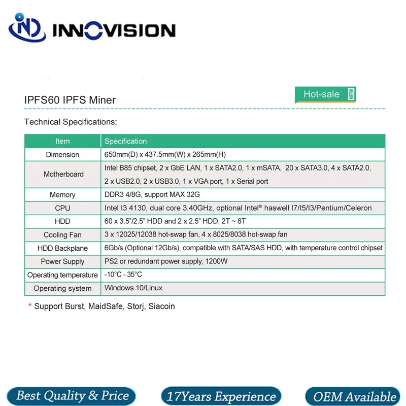 Item Name | New and most powerful model IPFS mine 60bay hard disk miner mining for Filecoin | |