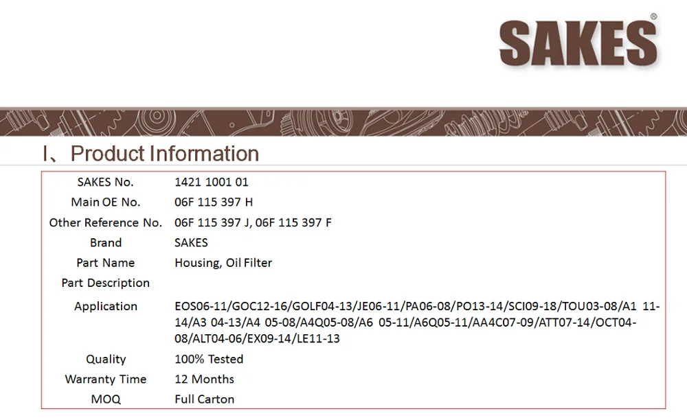 Oil Filter Housing 06F 115 397 H,06F 115 397 J for EOS06 11/GOC12 16/GOLF04 13