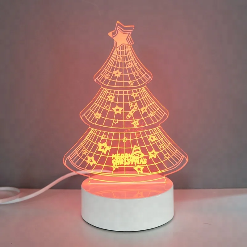 Color Changing Creative Acrylic Purple Christmas Tree 3D USB LED Light