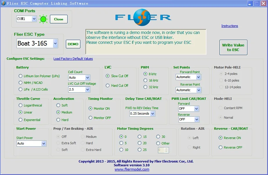 8. Enables setting the voltage per cell for the point at which the controller’s cut off circuitry engages.Li-MH/Li-Po from 2.0-3.6V,Ne-Cd/Ne-mH 0.4-1.0V,LiFe from2.2-2.8V