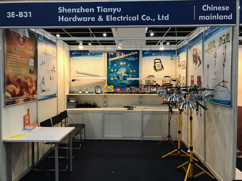 TIANYU HARDWARE & ELECTRICAL.,CO., LTD was founded in 2003. We are professional manufacturer speicialized in kinds of work lights, heating lamps and peripheral products. We have got the safety approvals such as UL, CSA, ETL, CCC, etc. There are more than 4,000 square meters and 120 employees in our company. We have been accredited ISO9001 for the Quality System since 2005. We have strong R&D department with abundant experience for 15 years. We can explore and produce all kinds of related products for different usages according to customers' requirements.
