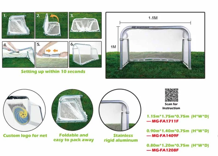 Football training equipment maluminium folding soccer goal with 1*1.5 m