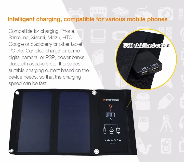 Factory Wholesale 15W High Efficiency Flexible Solar Panel Foldable And Portable Solar Power Bank