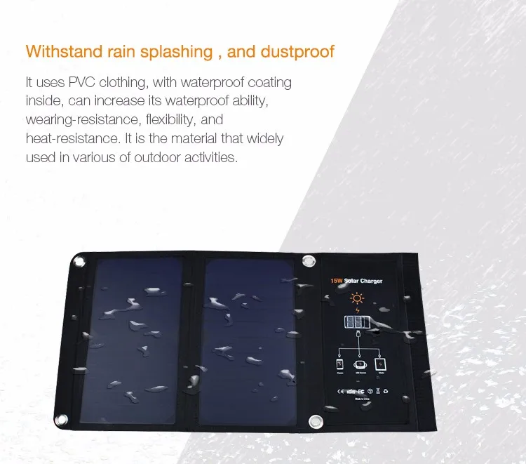 Material: | PET Lamination Sunpower solar panel with PVC waterproof clothing | ||||