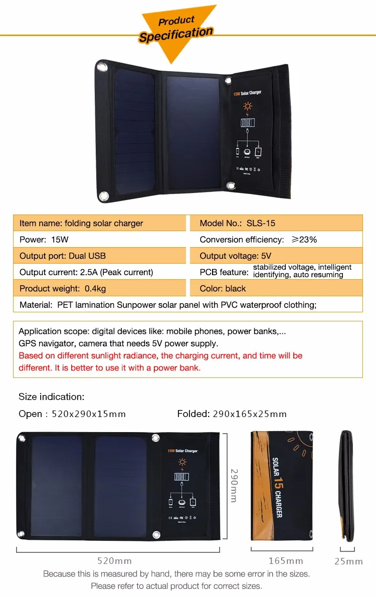 Solar Panel: | 15W | ||||