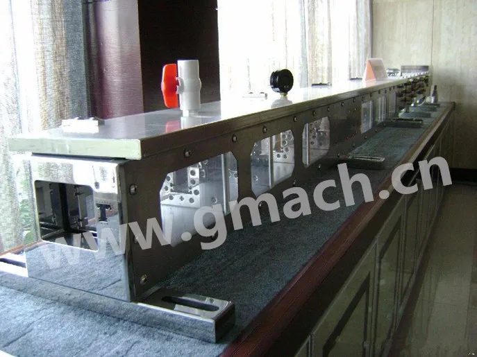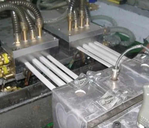 Mould composition: Die head, aluminum heating boards, calibrators and water tank