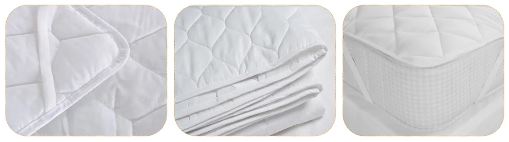 Mattress Protector | 90*200 | twin size(90*200cm) | A. Cover: 100% polyester micro fiber white plain fabric. Filling: Polyester fiber 120 gsm with quilted pattern.B. Cover: 50% cotton 50% polyester white plain fabric. Filling: Polyester fiber 120 gsm with quilted pattern.C. Cover: 100% cotton white plain fabric. Filling: Polyester fiber 120 gsm with quilted pattern. |