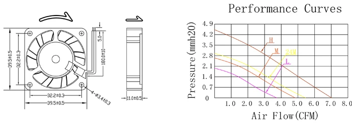 | DC05S4010L | 40*40*11 | 5 | 3.5 | 0.13 | 4500 | 3.77 | 1.94 | 22 | 14.00 |