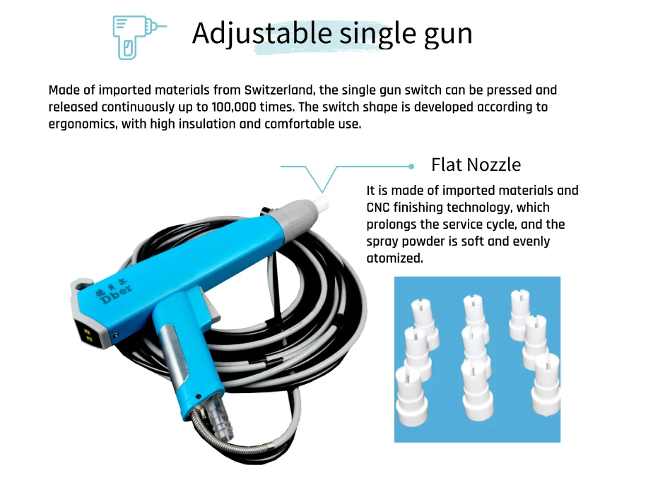 Shenzhen DBER Spray gun Co., Ltd was found in 2005, with cutting-edge technology, strong innovation capability, and a number of patented products, we have become a leading company in the coating industry, Our products are widely used in various fields such as building material, TV, automobile, die-casting, sheet metal, etc. We are always committed to improving product design and quality. We have successfully worked out solutions to three difficult issues in the industry including metal powder coating, groove parts coating and re-coat parts coating. Tailor-made products with different performances can also be arranged in terms of customers’ individual requirements. We are sure that we could be your ideal choice.