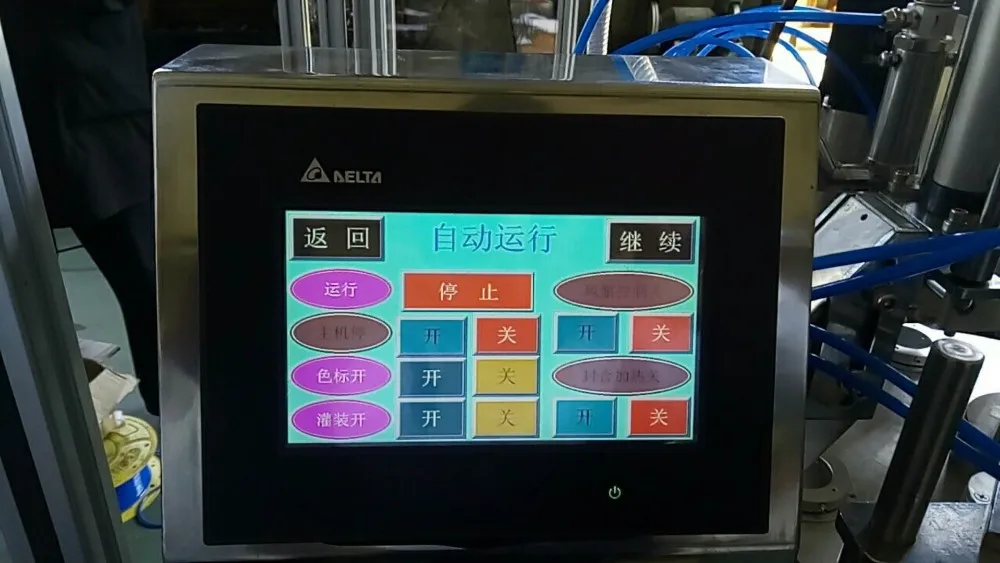 2.Mechanically adjusted filling volume,no filling in case of no tube,PLC control,touch screen operation.