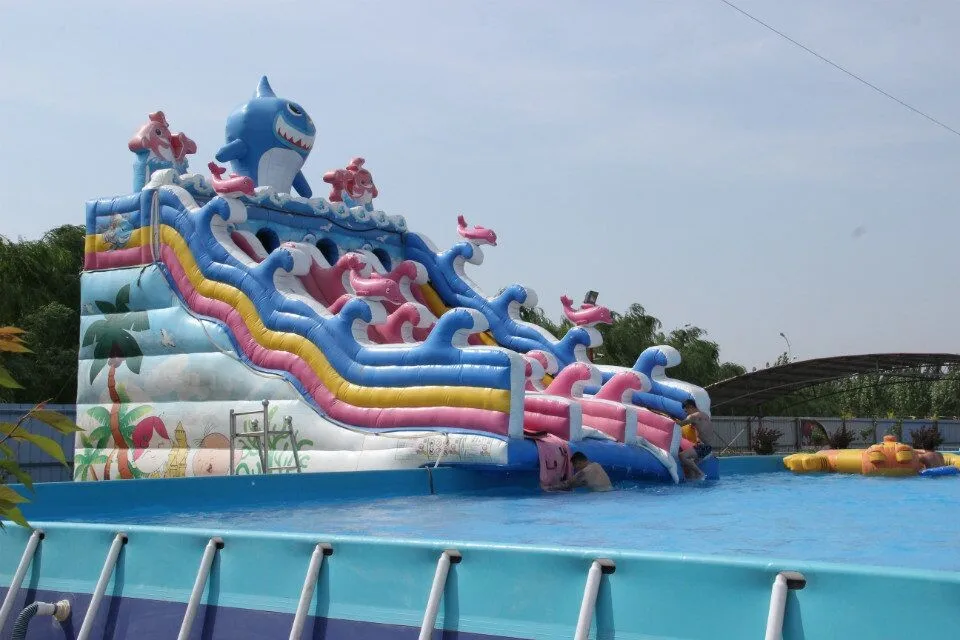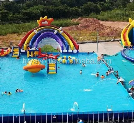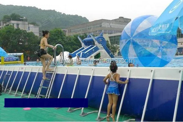 The inflatable steel frame pool are used for water park swimming pools,put the inflatable water slide,water toys,obstacles,water floating inside the pools,people can enjoy their summer in the hot weather.