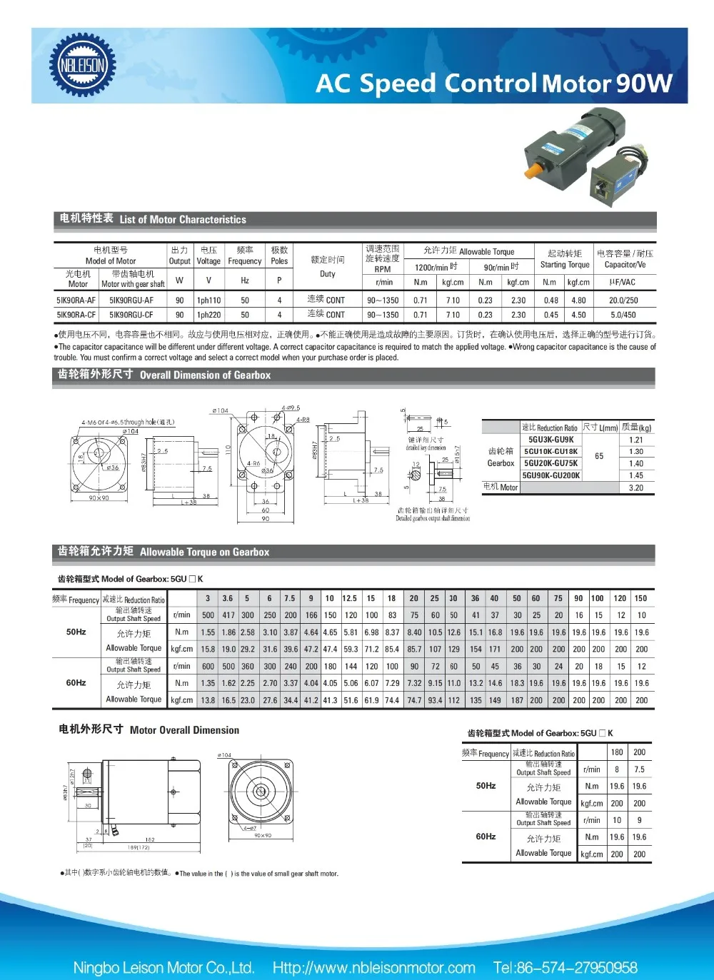 7) AC Gear Motor: 49 to 100mm diameter, 6-140 output power