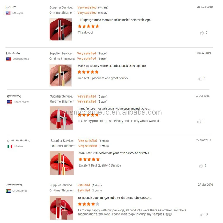A: We offer a variety of cosmetics, such as liquid lipstick , lip gloss , lip balm, lip liner , eyeshadow, mascara, eyeliner,eyebrow, foundation, highlighter etc.