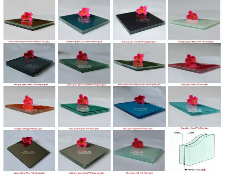 Color | PVB Color: Clear, Milk, F. Green, Bronze, Light Grey, Dark Grey etc. Glass Color: Clear, Dark Bronze, Light Bronze, Dark Grey, Euro Grey, Dark Green, F. Green, Dark Blue, Lake Blue etc. |