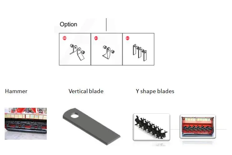 7. Y shape blades, hammer and vertical blades for grass. With double blades.