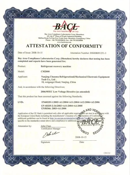 Refrigerant recovery machine of CM are sold all over the world in 46 countries. CM recovery systems have got ISO and CE certificate and all the machines are made according to the ARI 740 standard. CM has established long term and harmonious cooperation relationships with YORK, MIDEA ,CARRIER, MCQUAY, etc. CM is your trustworthy partner.