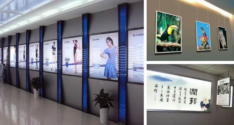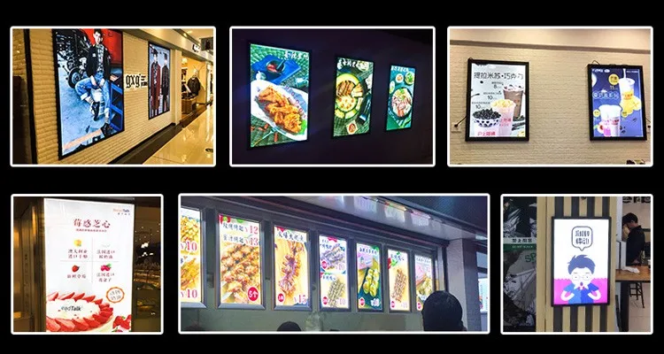 The thickness of the ultra-thin snap aluminum frame light box is only 2.5cm. It is used for all kinds of occasions. It is lighter in weight and convenient for installation.