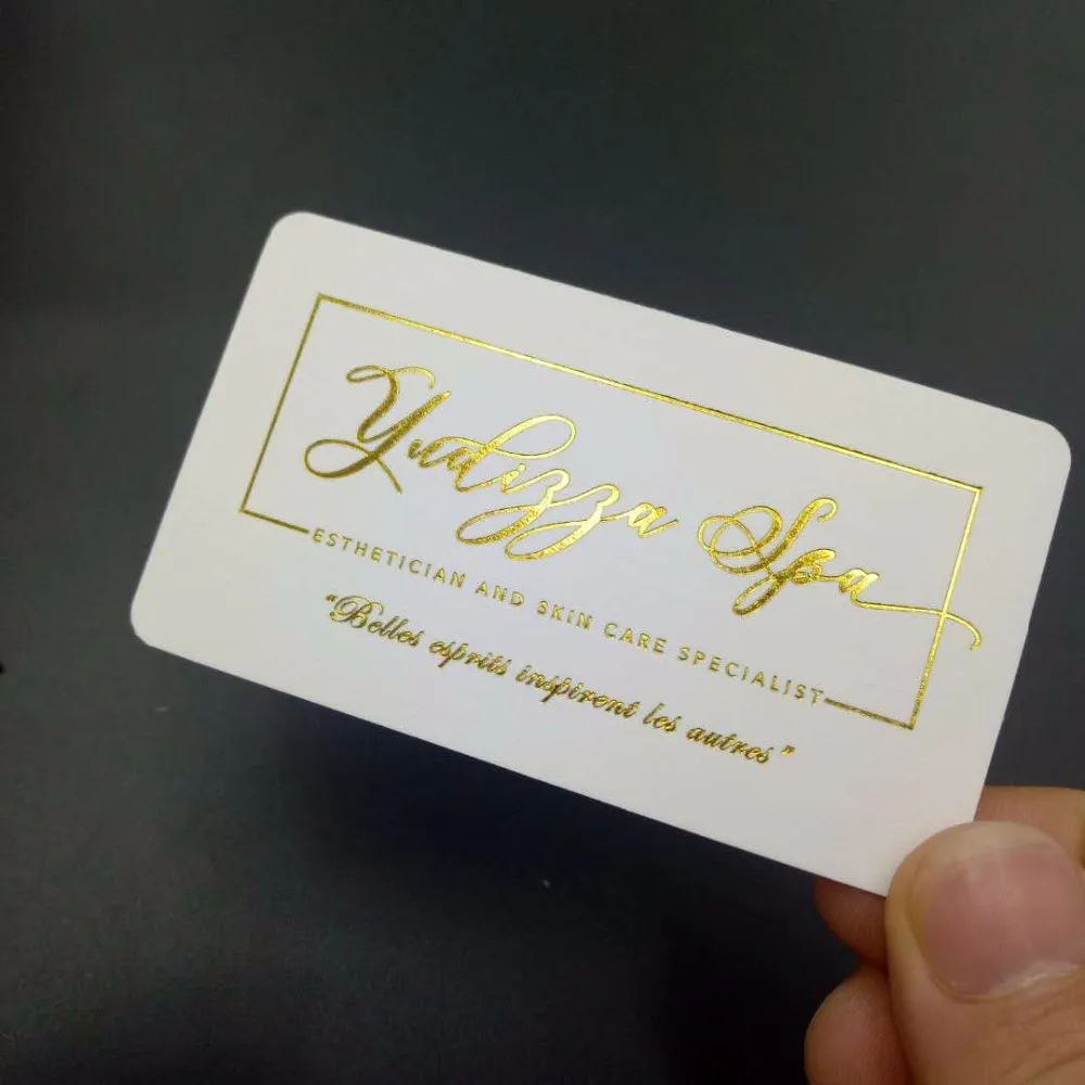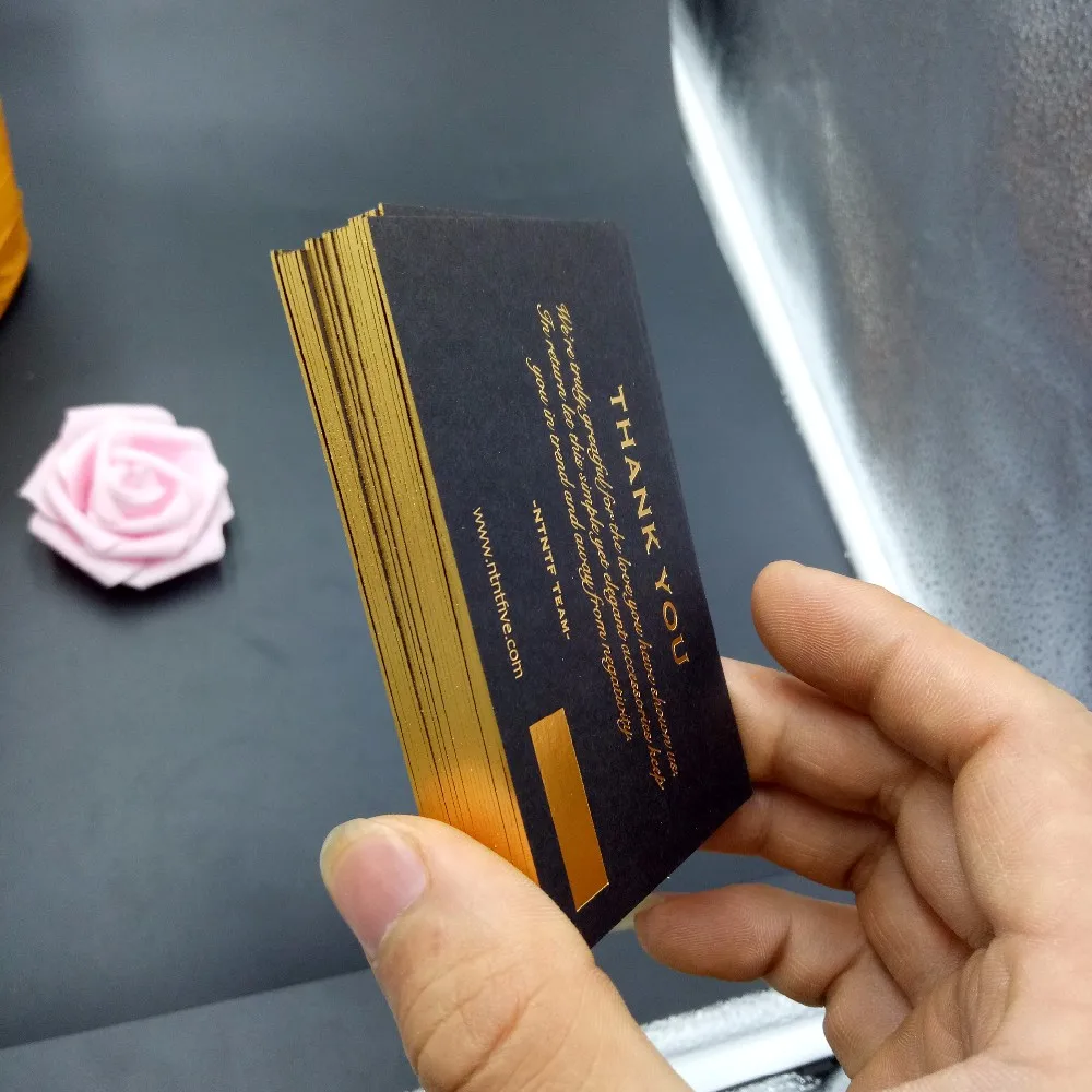 White paper gold foil with round corner business card Black paper gold foil , golden edge color business card