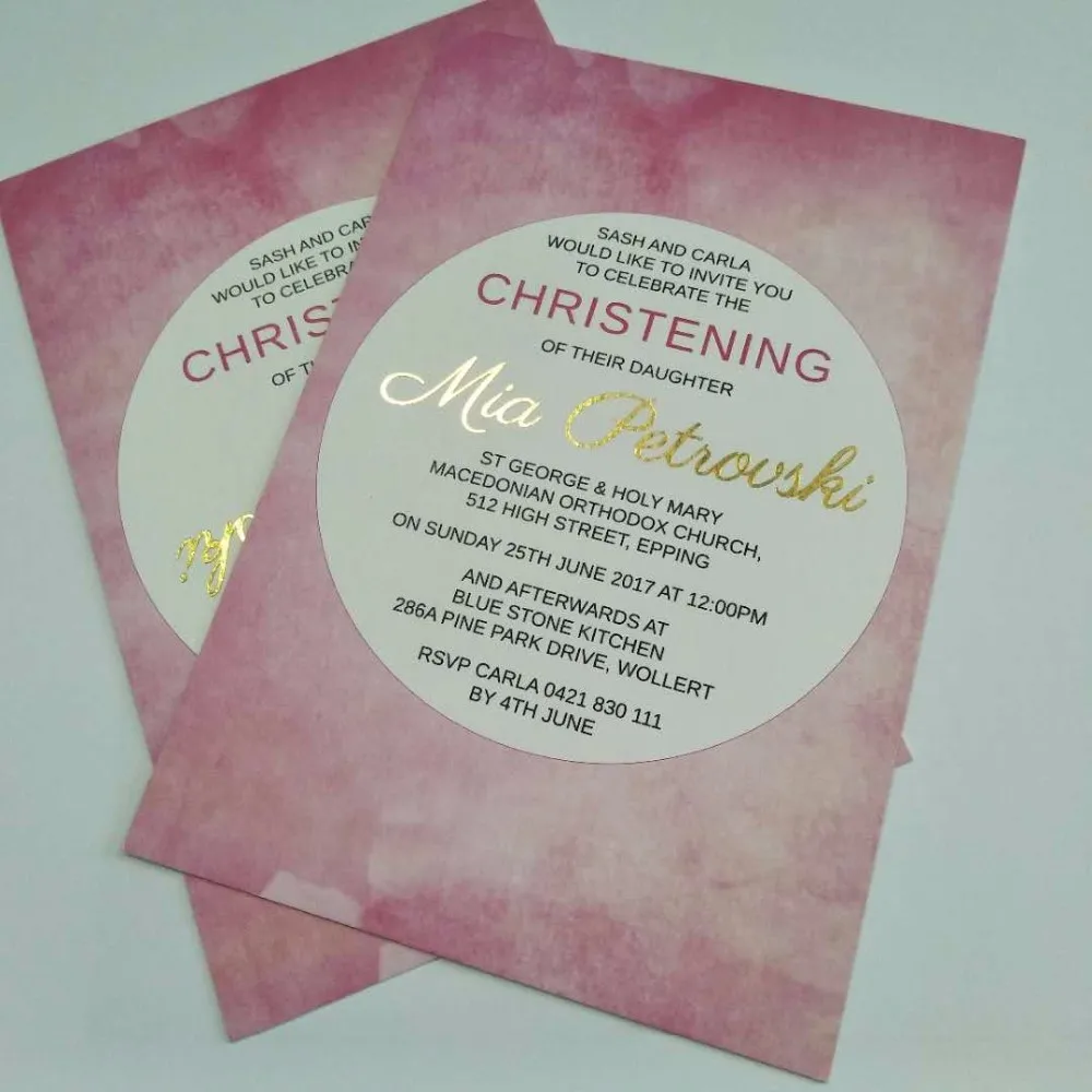 Gold foil invitation card Laser cut card printing