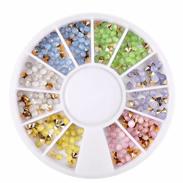 Top Point Crystal Opal Stone Rhinestone 3D Nail Art Designs with 12 Color Mixed Wheel Box for DIY Finger Nail Art