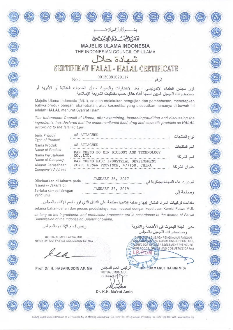 ISO9001, ISO22000, HACCP, QS ,HALAL Certificates