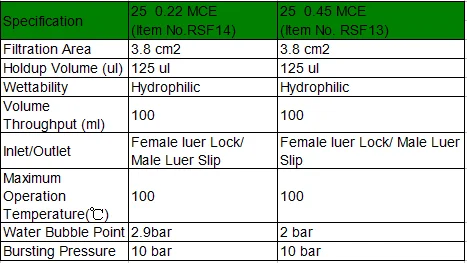 RSF25M1CS | Sterile Syringe Filter | 25 | 0.45 | MCE | 50pcs/Box |