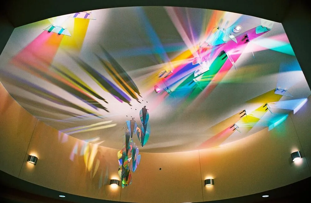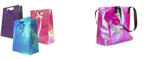 Fabric industry: Rainbow Film can be laminated with non-woven to make beautiful reusable shopping bags or laminated with curtain fabric to make the colorful Symphony the effect curtains and ornaments.