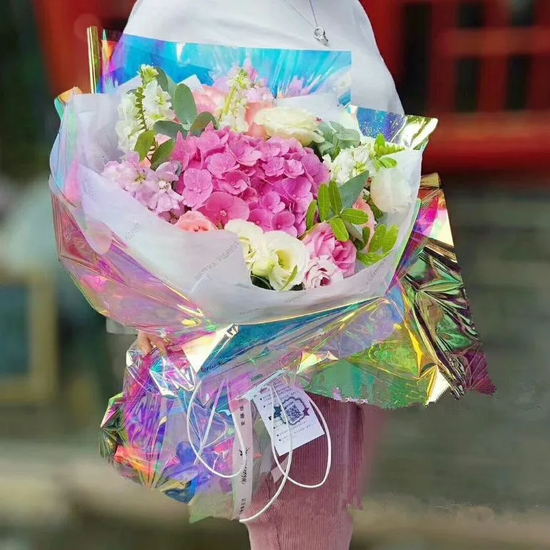 The solely rainbow film can also be used as a flower packaging, applied to the craft gift packaging, and the rainbow film can also be crushed into a snowflake shape for Christmas craft trees and Christmas gifts.