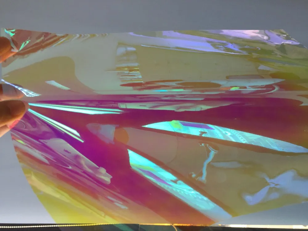 It is a multilayer film, It makes full use of optical interference, under the light, refraction and interference between layers caused multi-angle layer color change between layers. like the rainbow effect in the sky. The rich light effects of the iris film substrate itself have completely different illusion effects when viewing it in different distance and angles.