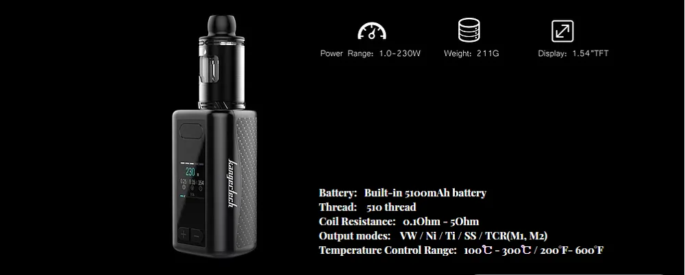 | iKEN 230W Box Mod | Size | 44 mm x 42 mm x 78 mm | ||
