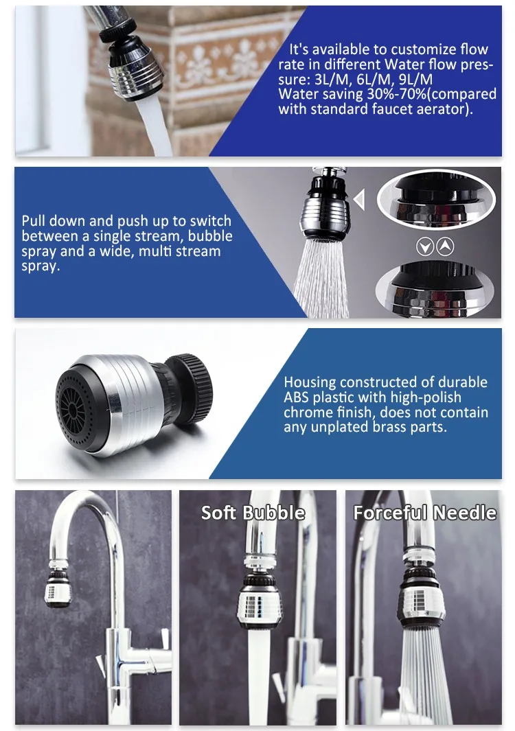 | Advantages | auto-regular with stable flow rate; a splash-free aerator stream under difficult flow conditions ; conserve energy and water without sacrificing quality. |