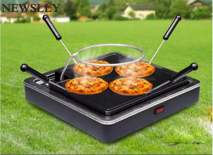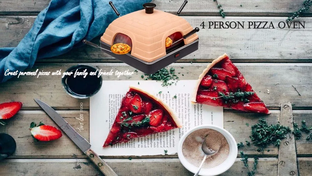 The pizza oven for 4 people gives you a feeling of an Italian pizza Restaurant setting. You can enjoy individual pizzas,calzones and your favourite desserts with your family together in your own home, very convenient,cool and fun for your whole family.With 1dough cutter and 6 spatulas, made of food grade matrial.The ceramic cover for special hand-made is easy to clean .