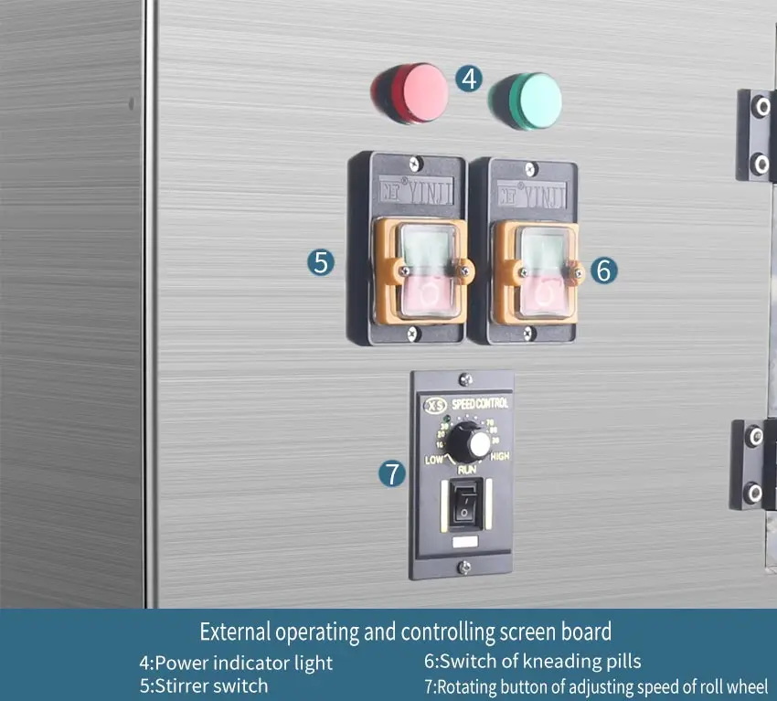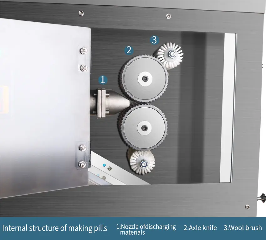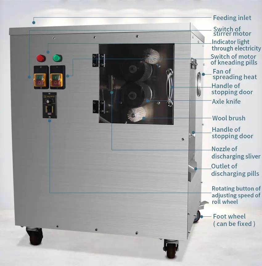 7.The outer side of kneading pill knives fixes wool brush which can prevent the phenomenon of making knives sticky.