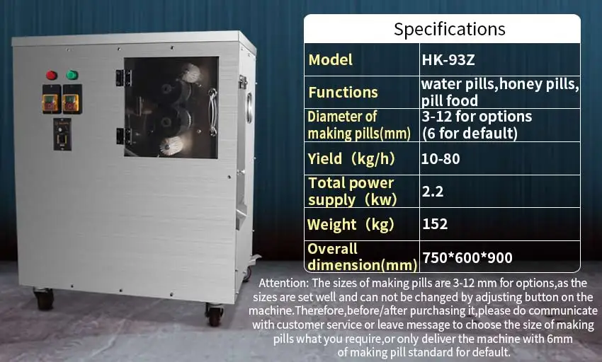 Diameter of making pills(mm) | 3-12 for options(6 for default) |