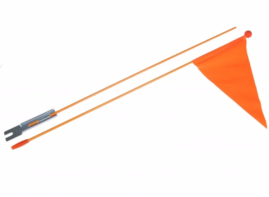 Bike flags also called bicycle flags, bike safety flags and bicycle safety flags are mounted on a flexible whip rod flag pole that makes your bike highly visible to other bikers and motorist. You can choose from a blank color bike flag or a custom printed bike flag. Blank bike flags come in a variety of bright colors too choose from. Custom bicycle safety flags allow you to personalize your design. These flags are great for family reunions, birthday parties or field days. You can choose between Polyester, Vinyl and PVC as the fabric of your choice. Bike Flag poles are easily mounted on your bicycle with a rear axle mount that is specially designed to fit nicely on your bike. Made from a flexible fiberglass the bike flag poles are 6′ tall to add maximum visibility. We have two options you can choose from for the poles, a 1 piece white fiberglass pole or a 3 piece orange fiberglass pole. All the different materials: Polyester, Vinyl and PVC plastic are easily mounted on the pole and can be simple switched out for a new bicycle flag when needed. Bike flags are also popular for golf carts, ATV’s, wheelchairs, corner flags for soccer fields or field markers.