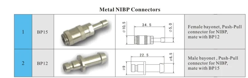 BP15 matched with BP12 luer gas path female medical connectors