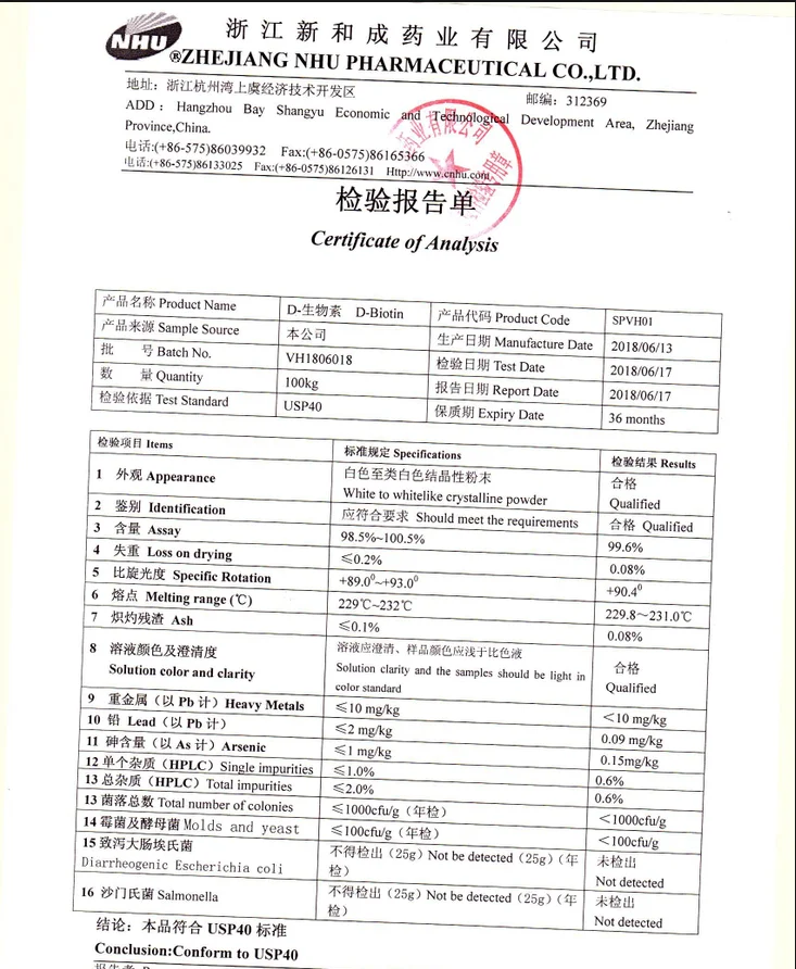3)D-Biotin can maintain normal growth and development. Biotin deficiency will cause reproductive functions recession, bad bone growth and the obstruction of embryo and early childhood growth.